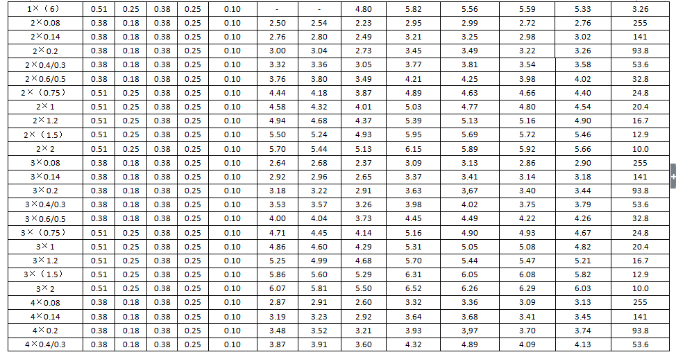 導(dǎo)體結(jié)構(gòu) 根數(shù)/單線標(biāo)稱直徑mm Conductor structure Number/singe wire nominal diameter |