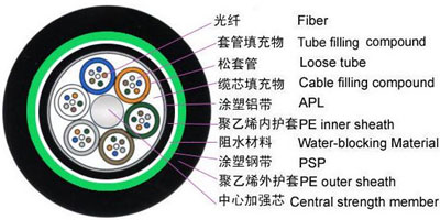 松套管結(jié)構(gòu),涂塑鋁帶縱包后擠制一層聚乙烯護(hù)套