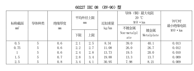 • 內(nèi)部布線用導(dǎo)體溫度為90℃的單芯軟導(dǎo)體無護套電纜